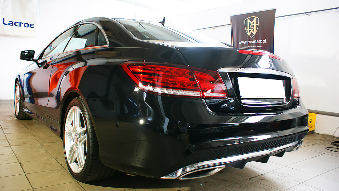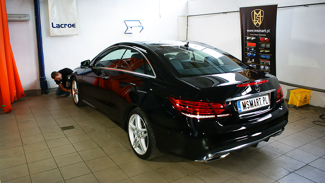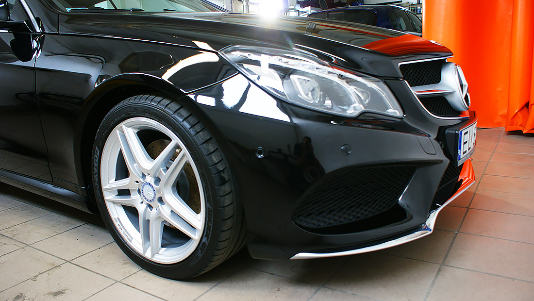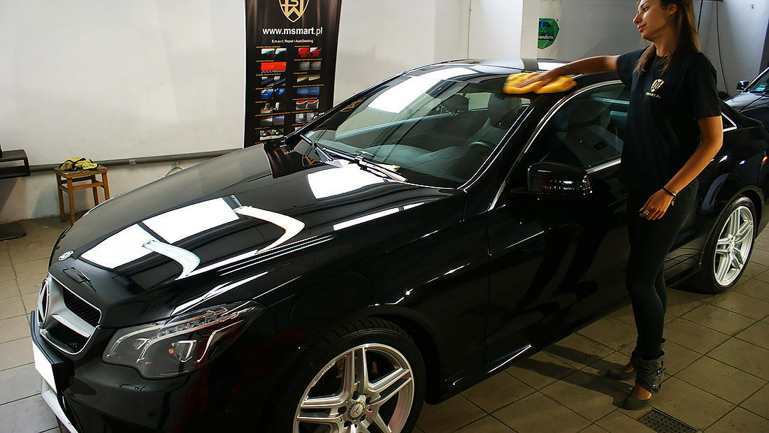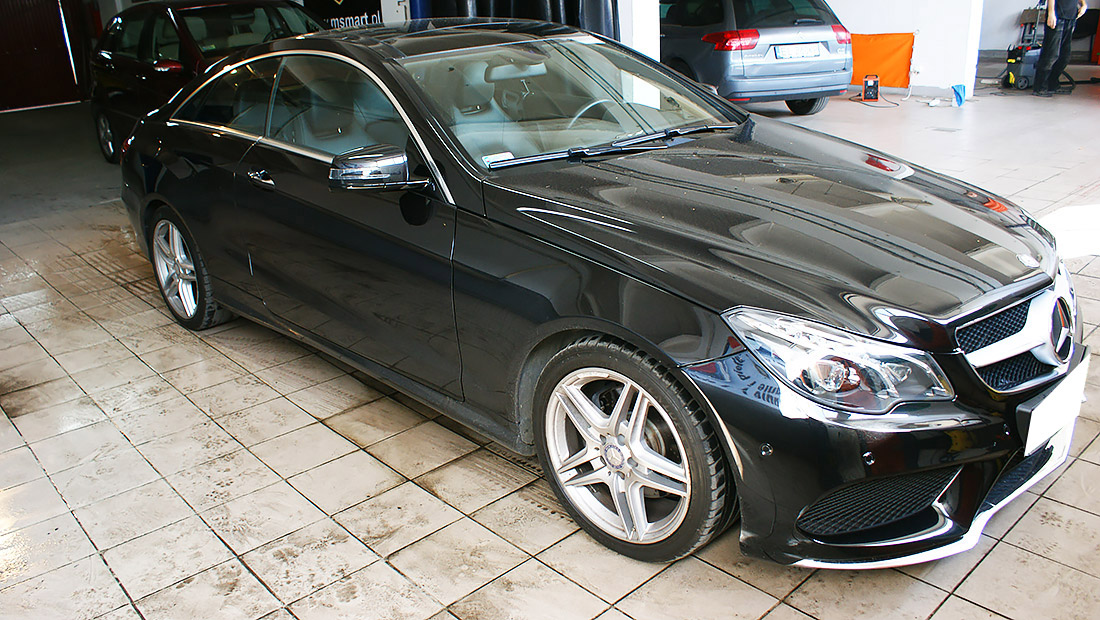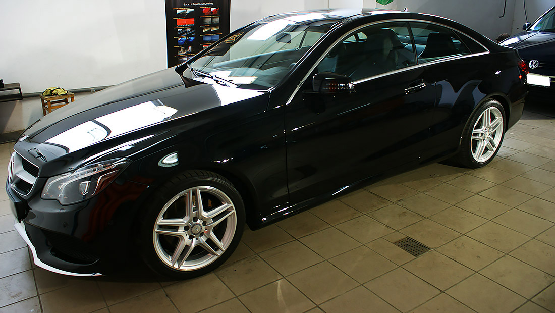 Mycie detailingowe, dekontaminacja lakieru, korekta lakieru. Prace wykonaliśmy przy użyciu preparatów z serii dla profesjonalistów firmy SONAX Profiline z wykorzystaniem maszyn polerskich Flex. Na pokrywie silnika usunęliśmy bez lakierowania wgniecenie. Wykonaliśmy pełen detailing wnętrza wraz z impregnacją wszystkich elementów.