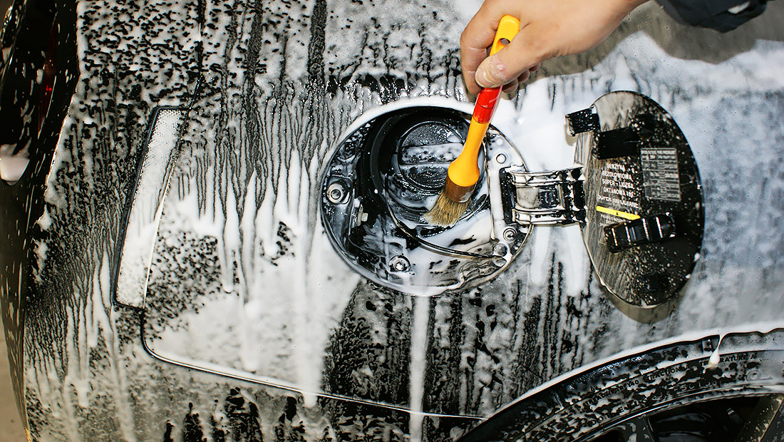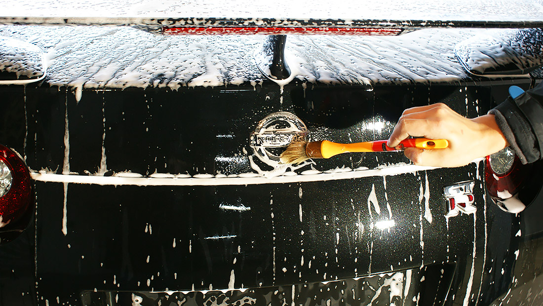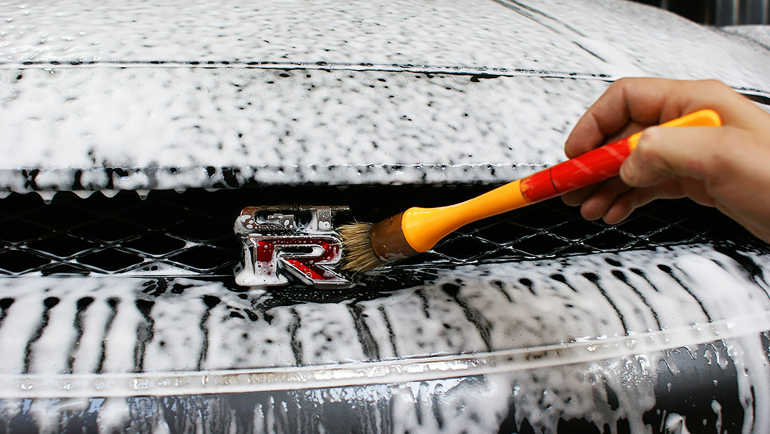 Po dokładnym umyciu detailingowym usunęliśmy naklejki z karoserii samochodu. Oczyściliśmy powierzchnię lakieru za pomocą glinki.